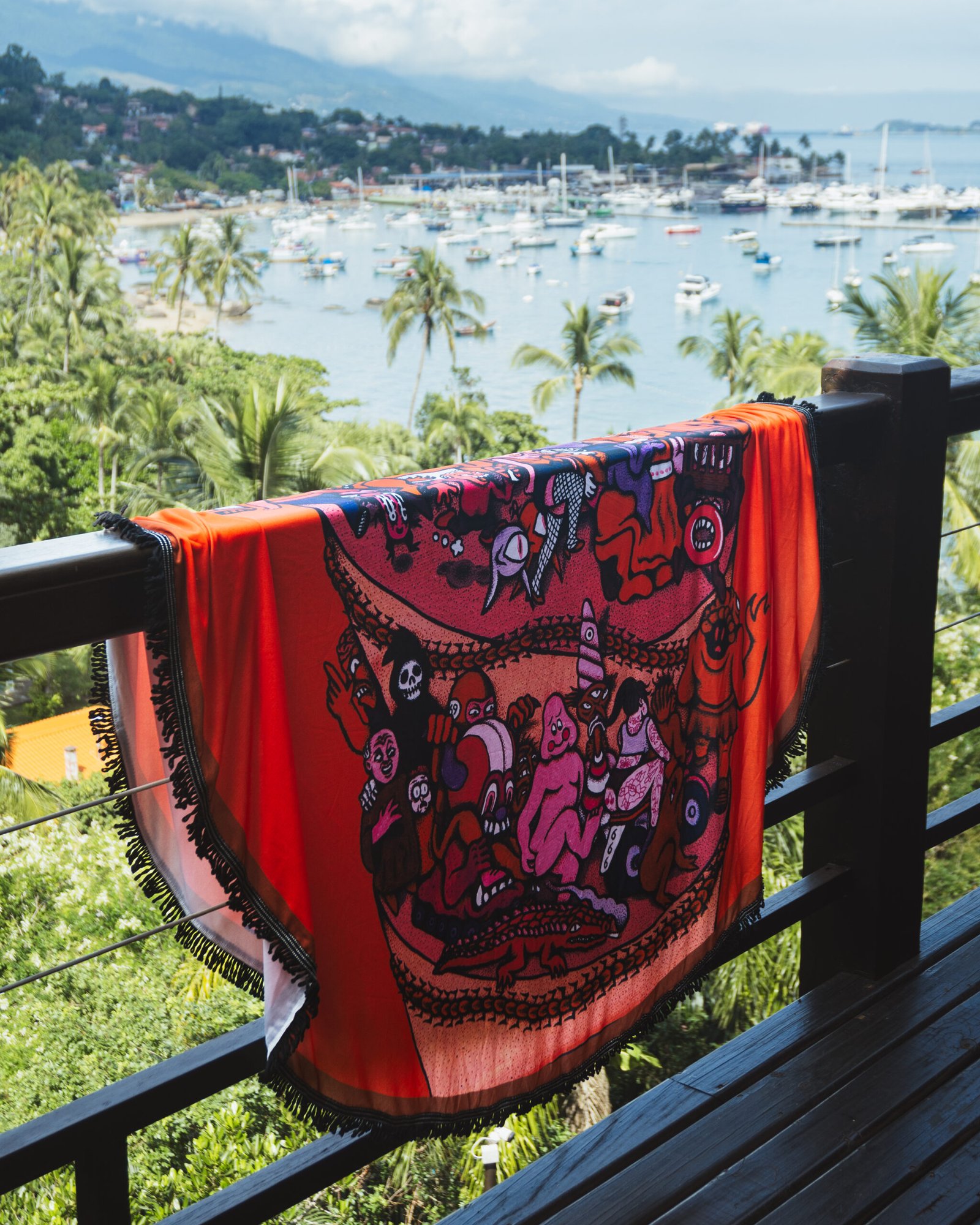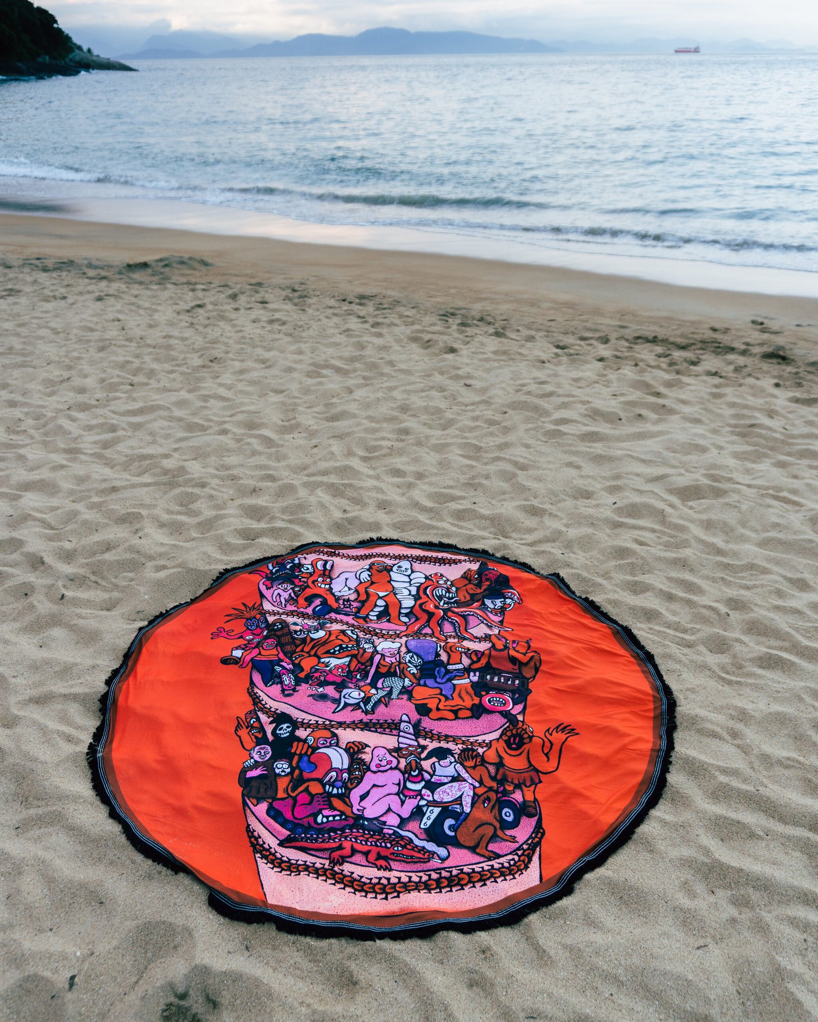 Cangas redondas 100% Poliéster com diâmetro de 1,5×1,5m. Perfeito para enfeitar a sala, usar como toalha de mesa, estender na areia da praia, fazer picnics, enfim, a imaginação é o limite!